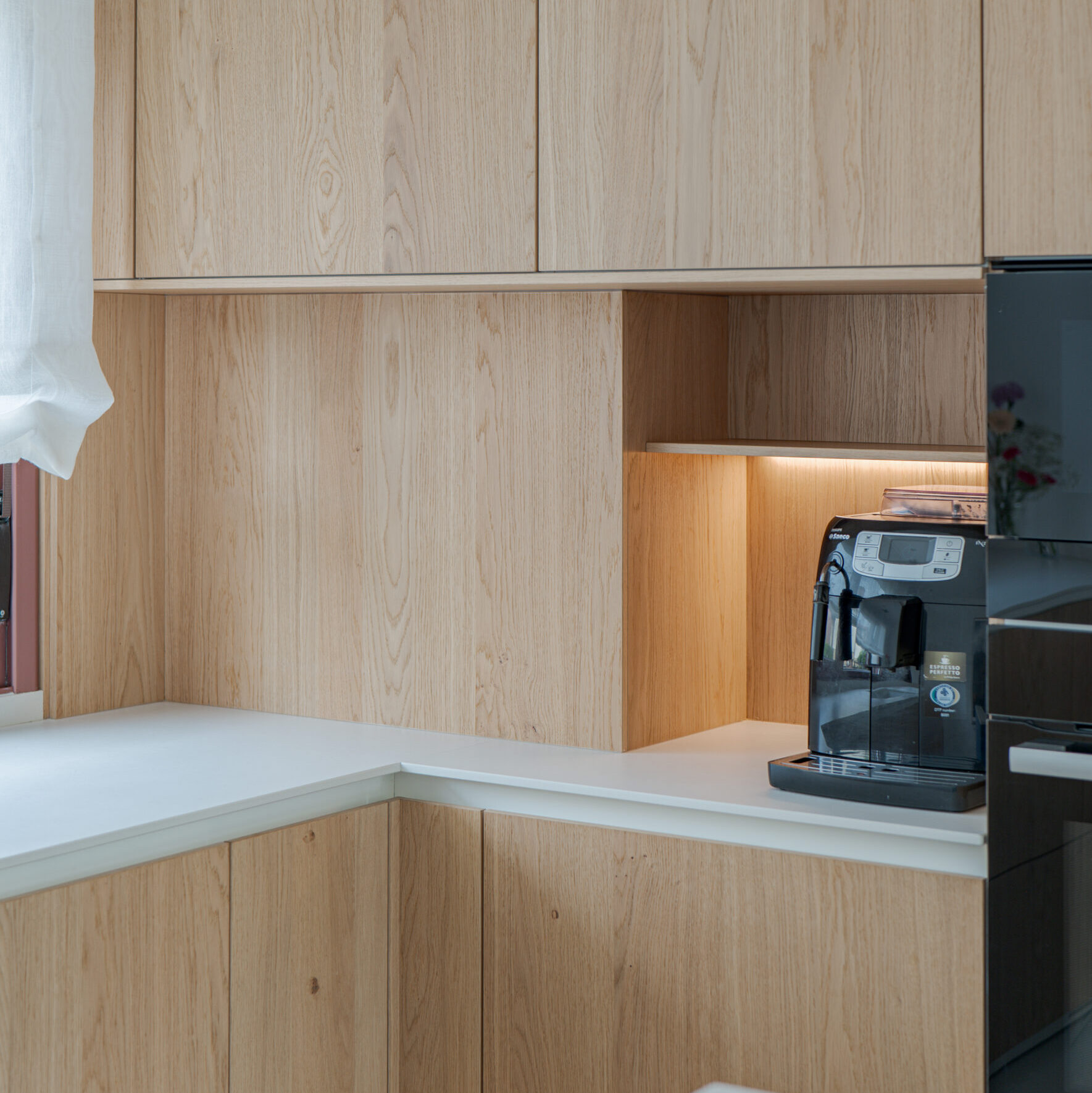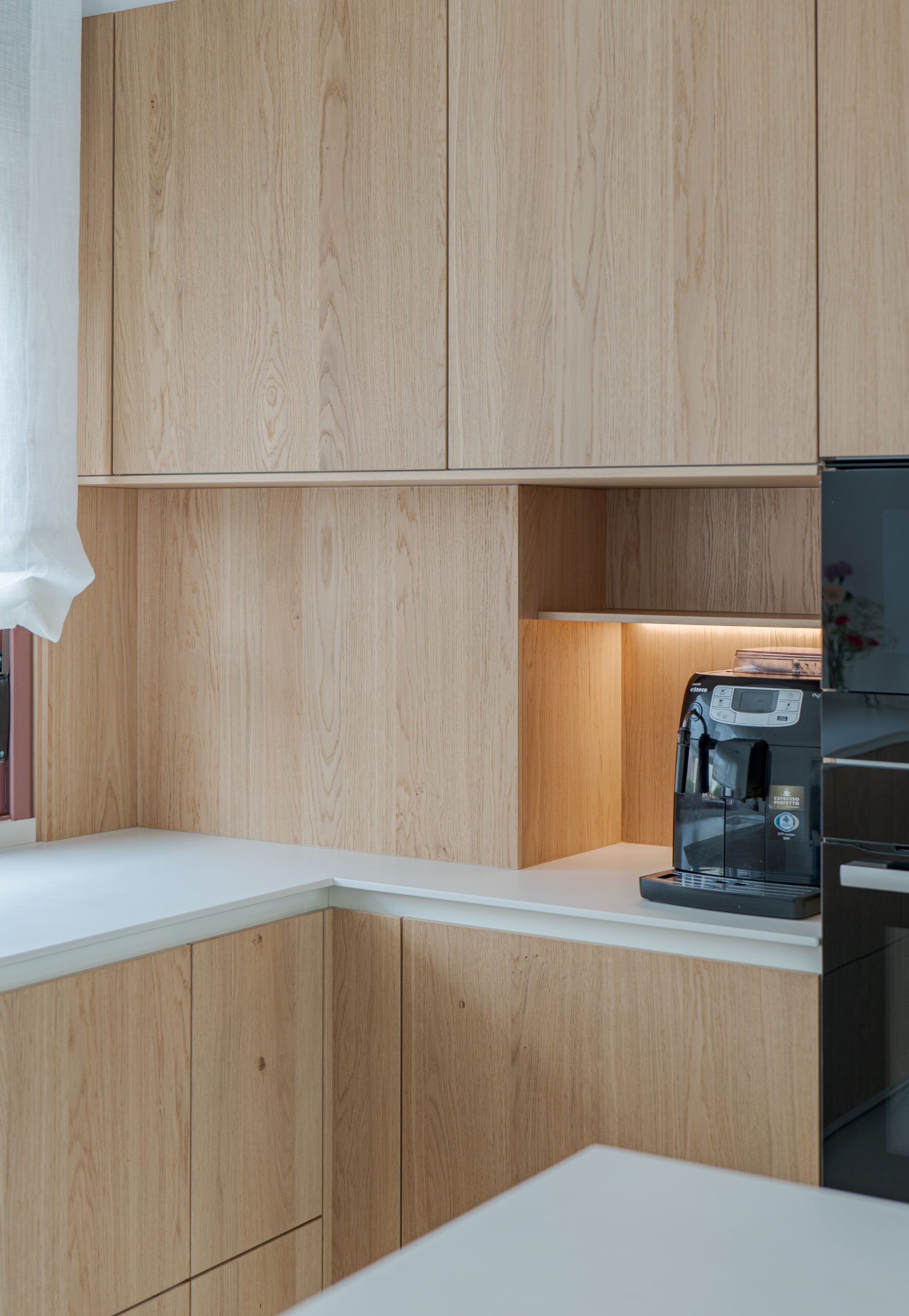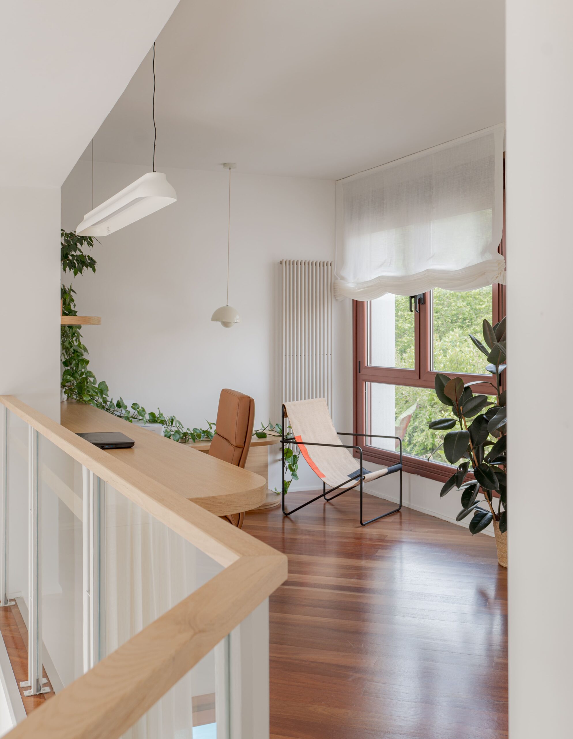 Reforma completa de vivienda con cambio en la distribución del espacio, con diseño de armarios, mueble de baño, mampara, mueble TV/chimenea, escritorio/zona de trabajo y cocina a medida por Lasal Estudio, selección de mobiliario, iluminación y decoración.