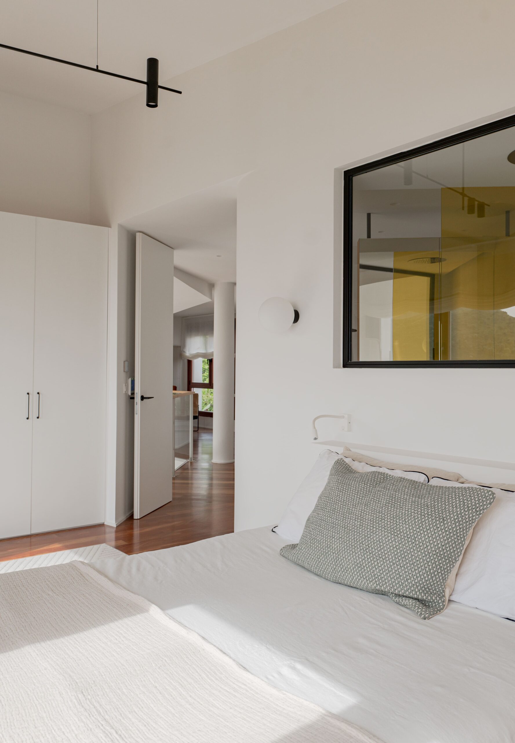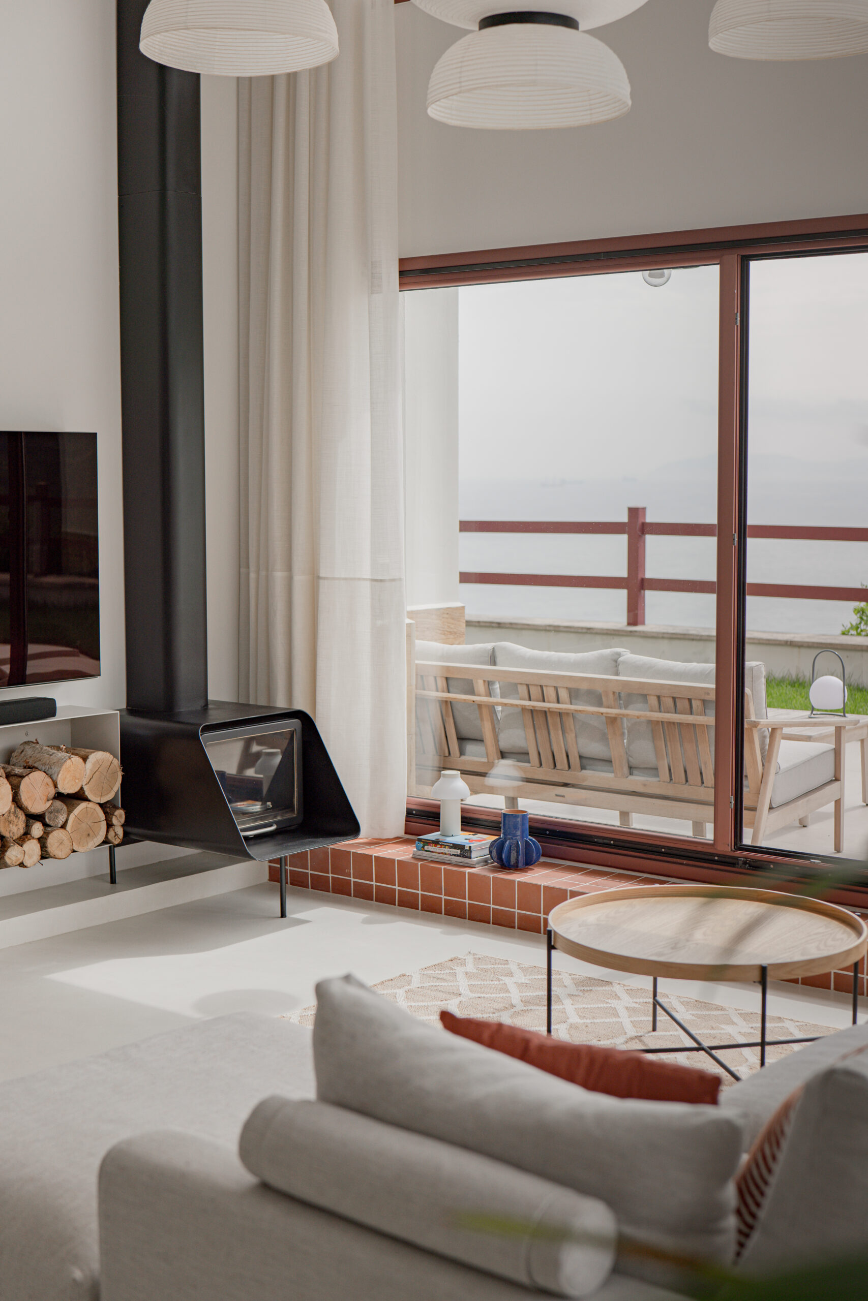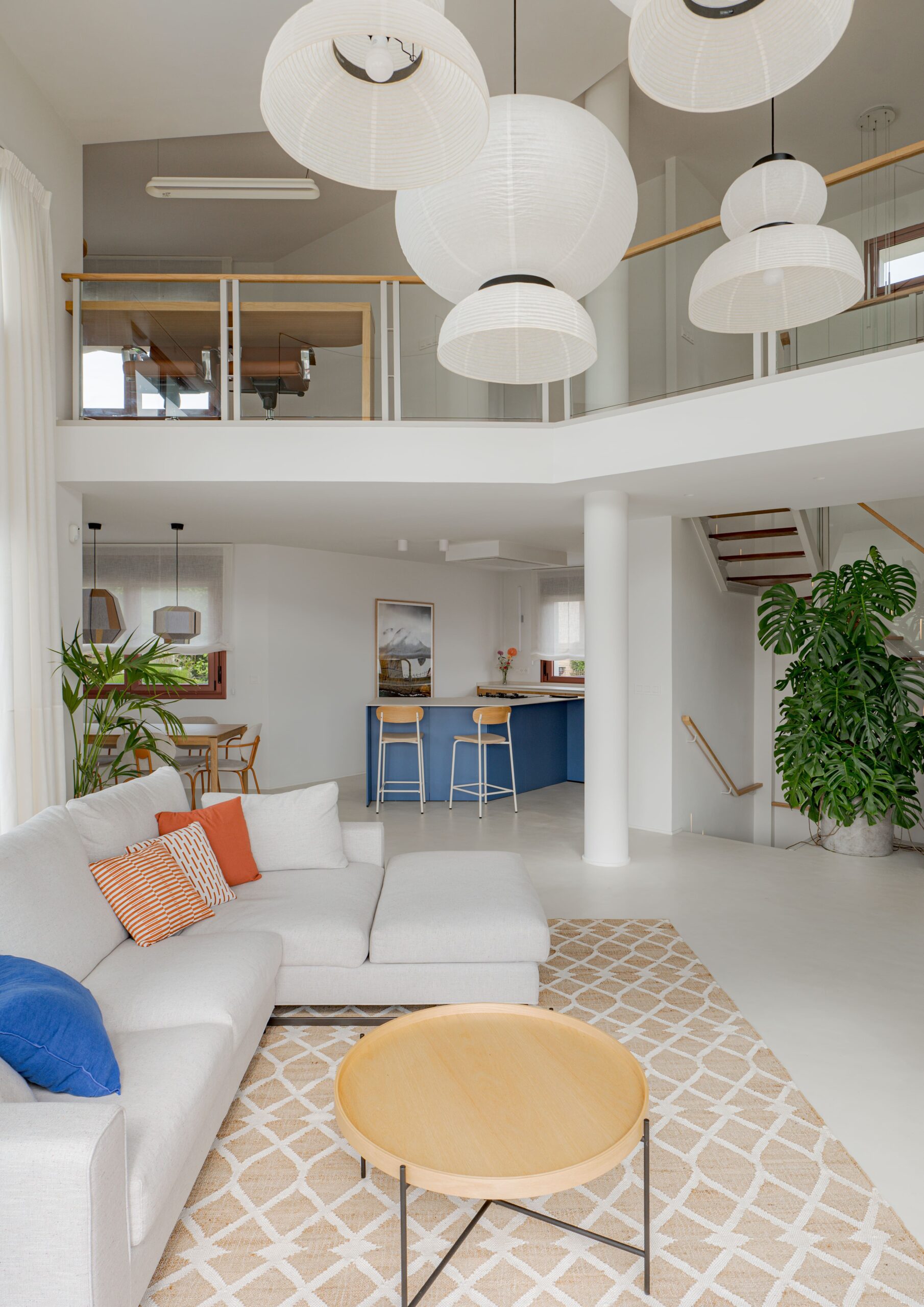 Reforma completa de vivienda con cambio en la distribución del espacio, con diseño de armarios, mueble de baño, mampara, mueble TV/chimenea, escritorio/zona de trabajo y cocina a medida por Lasal Estudio, selección de mobiliario, iluminación y decoración.