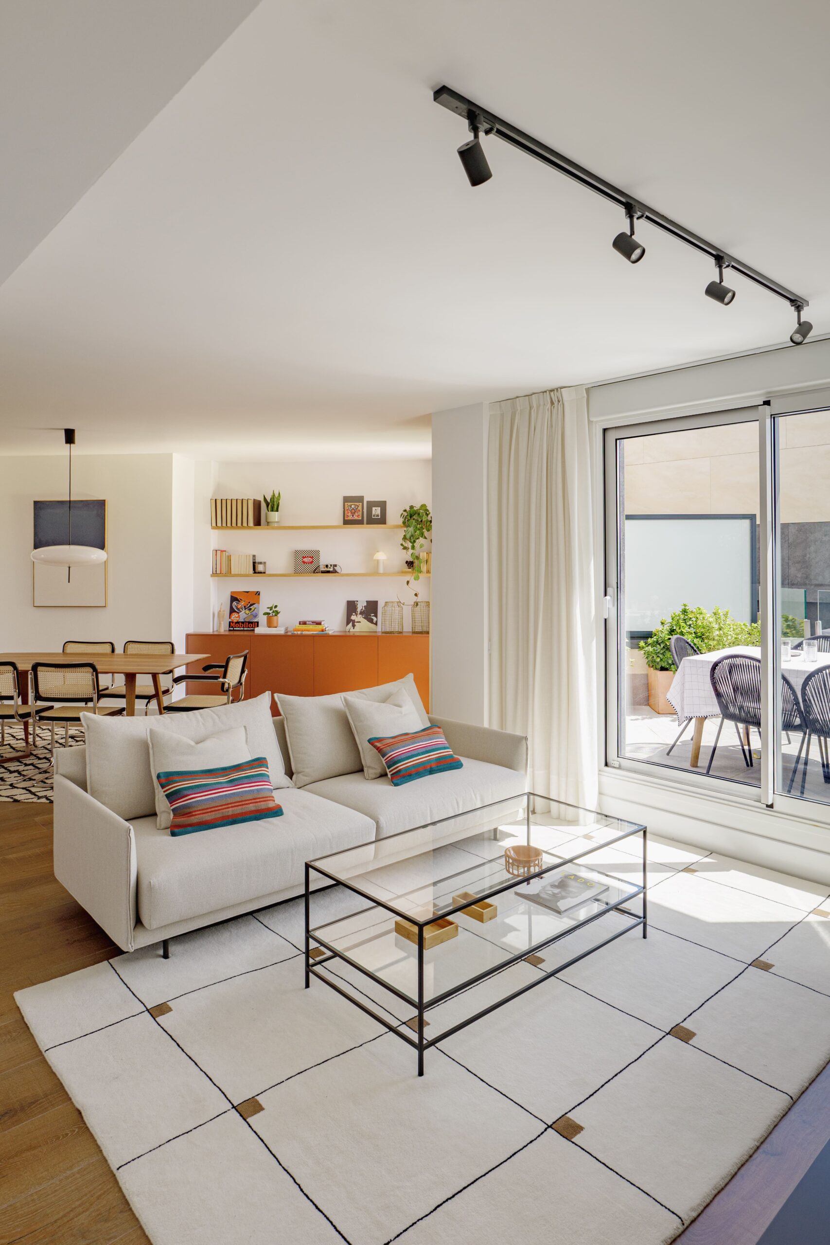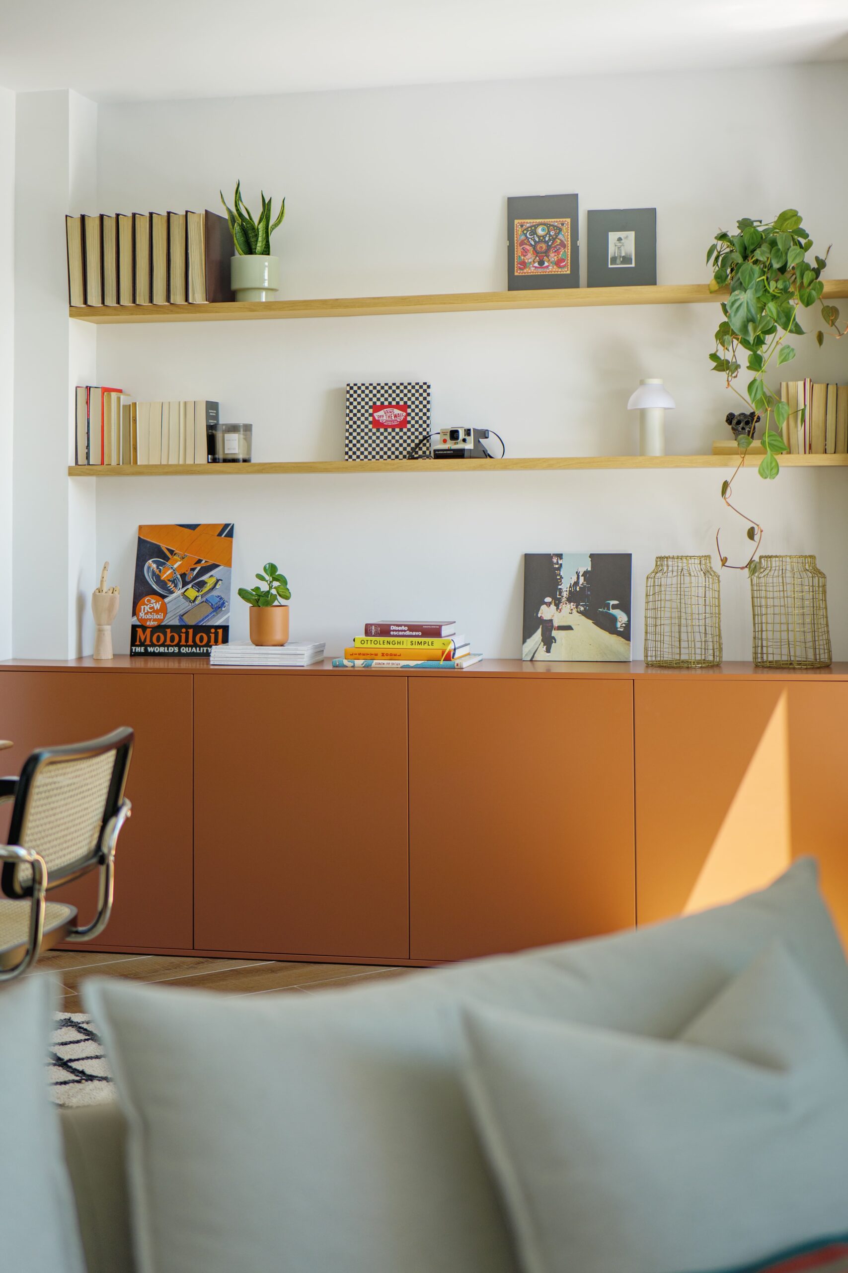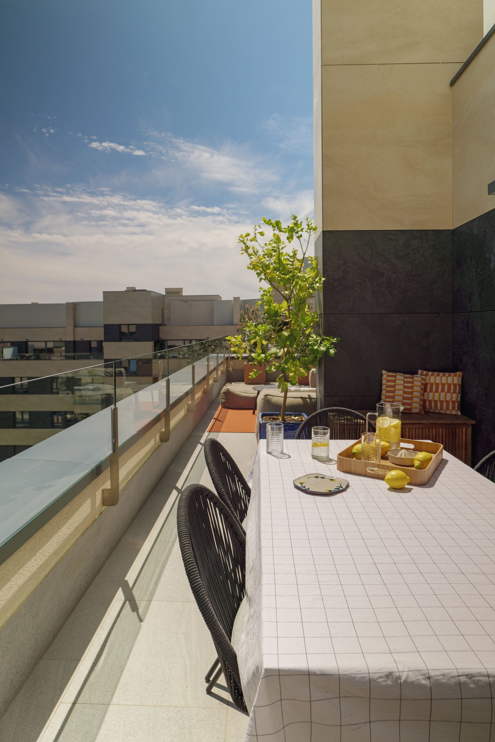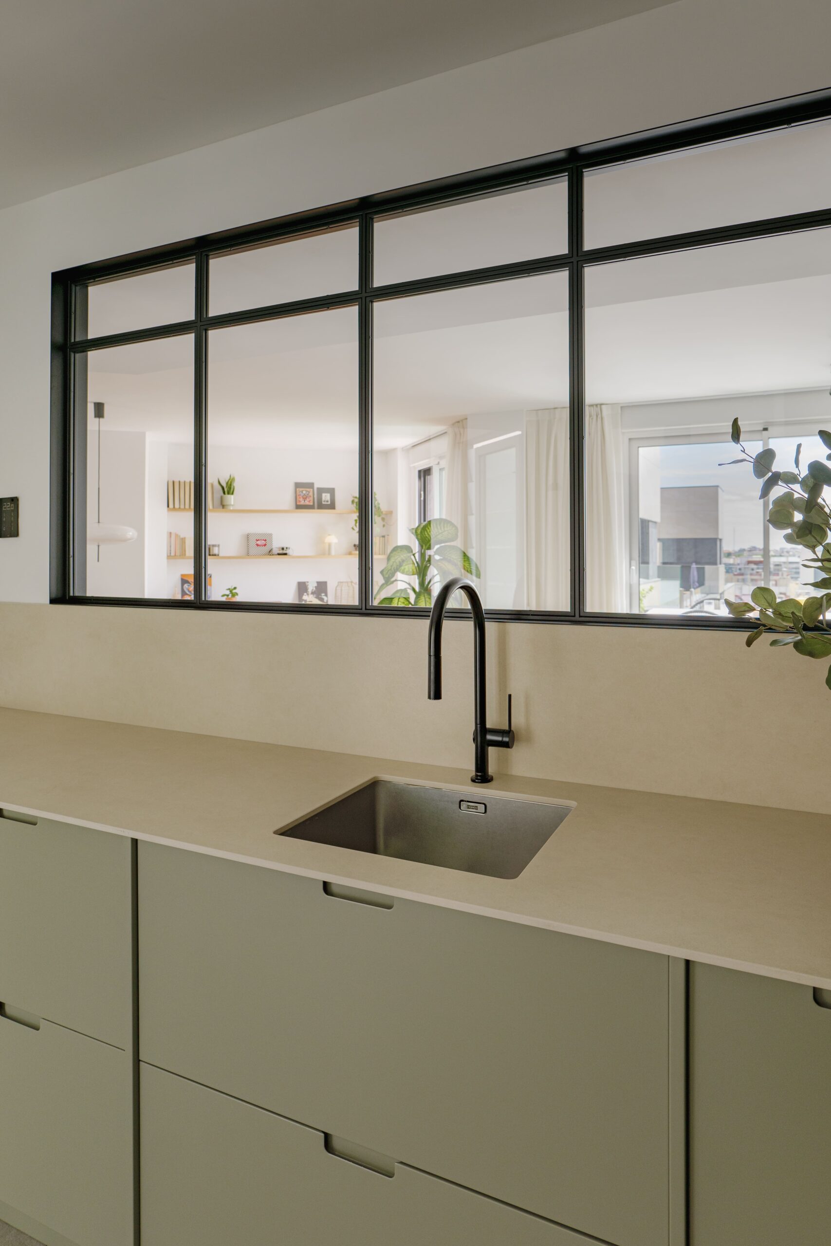 Selección de materiales y modificaciones en la distribución bajo plano para construcción de vivienda de obra nueva por medio de promotora. Diseño de mueble de comedor, cabecero, mueble de baño y cocina a medida por Lasal Estudio, selección de mobiliario, iluminación y decoración.