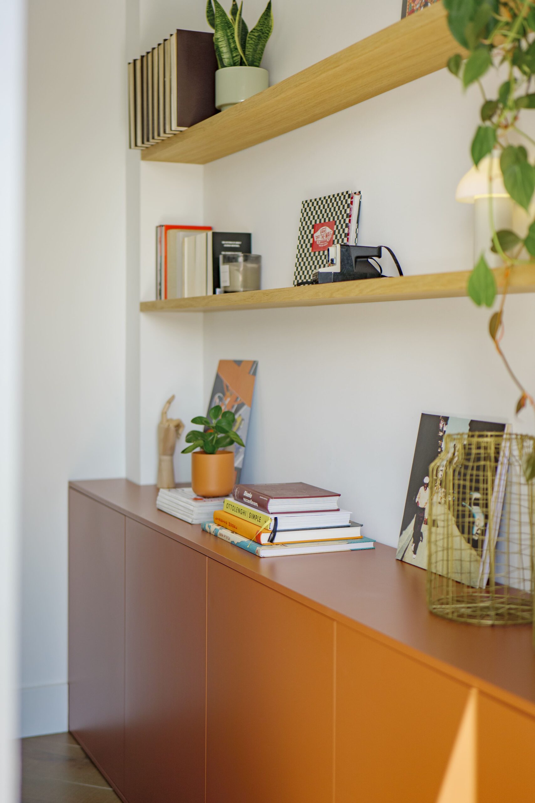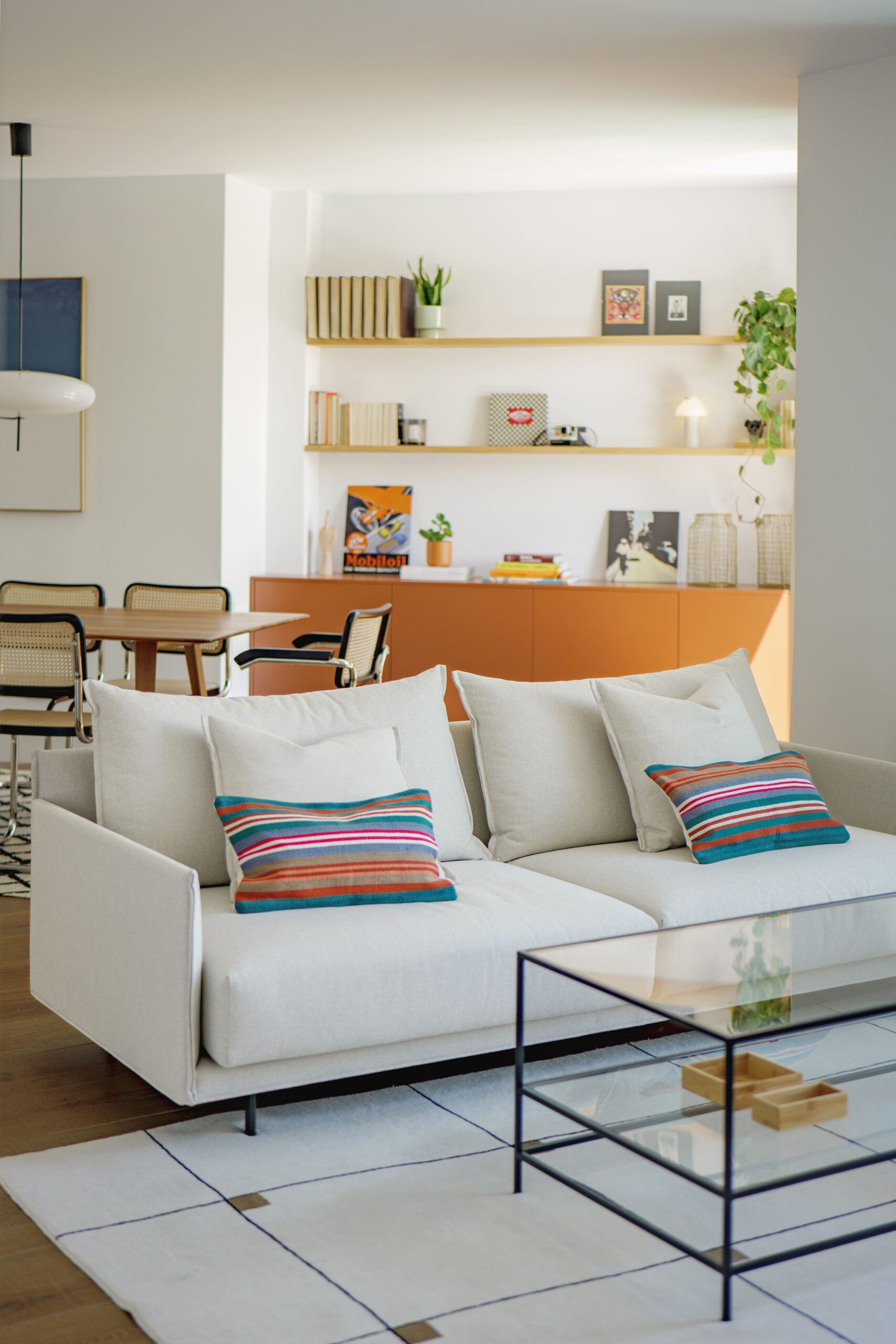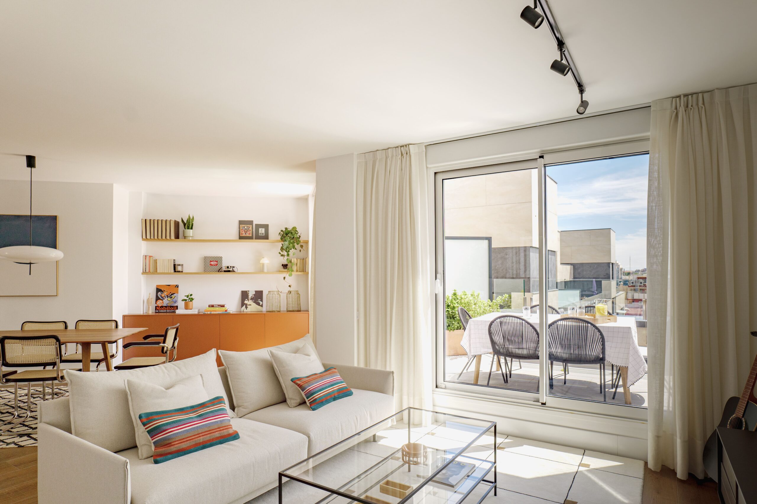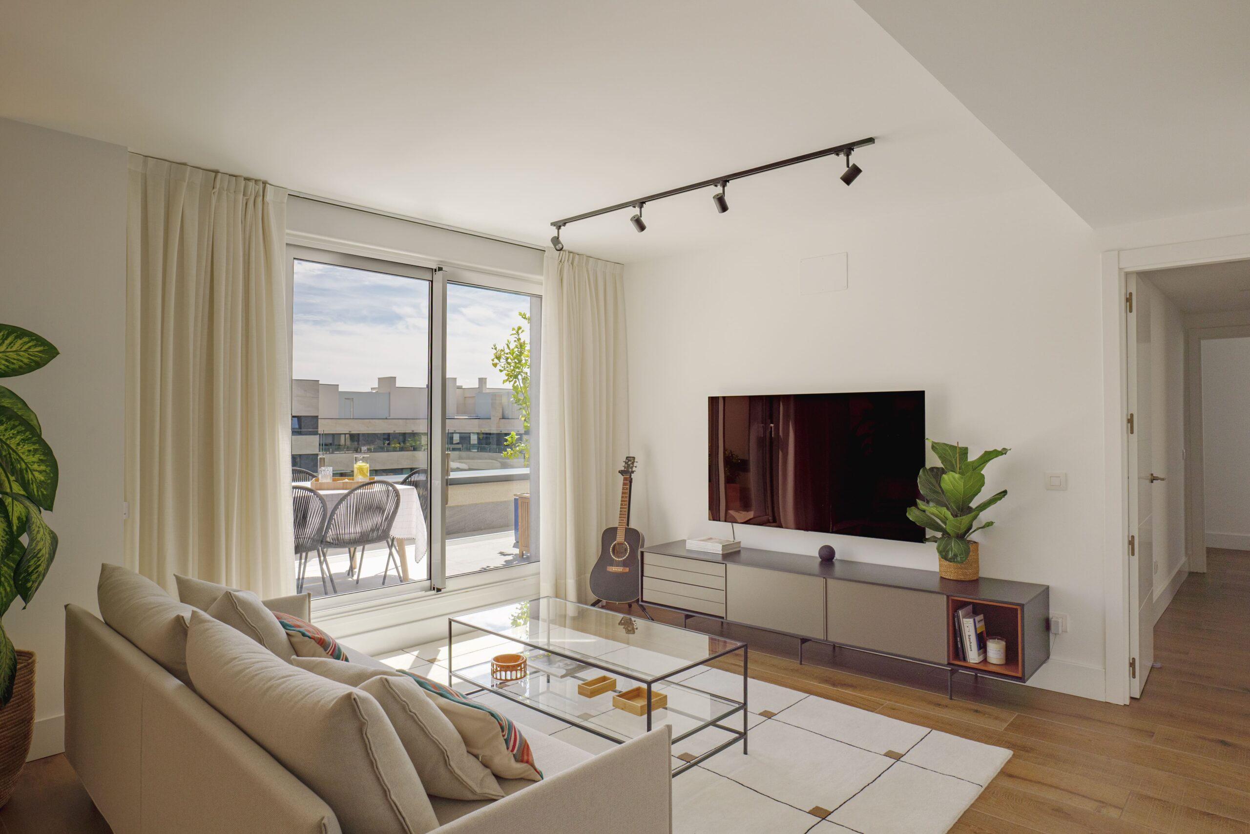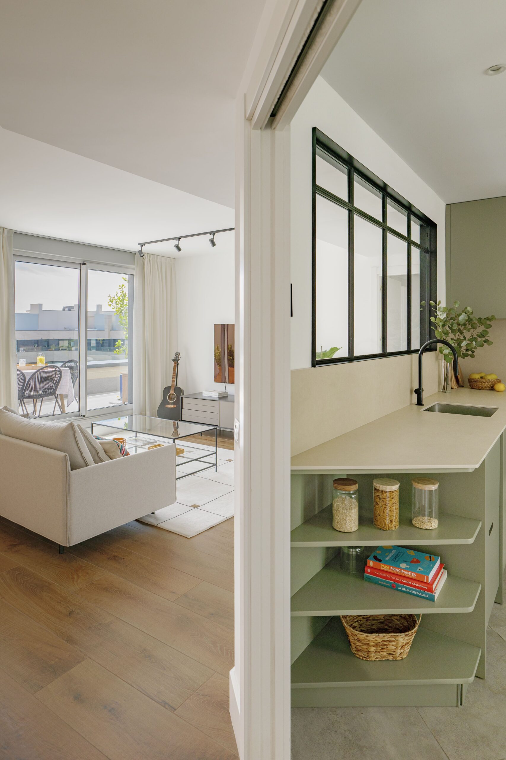 Selección de materiales y modificaciones en la distribución bajo plano para construcción de vivienda de obra nueva por medio de promotora. Diseño de mueble de comedor, cabecero, mueble de baño y cocina a medida por Lasal Estudio, selección de mobiliario, iluminación y decoración.