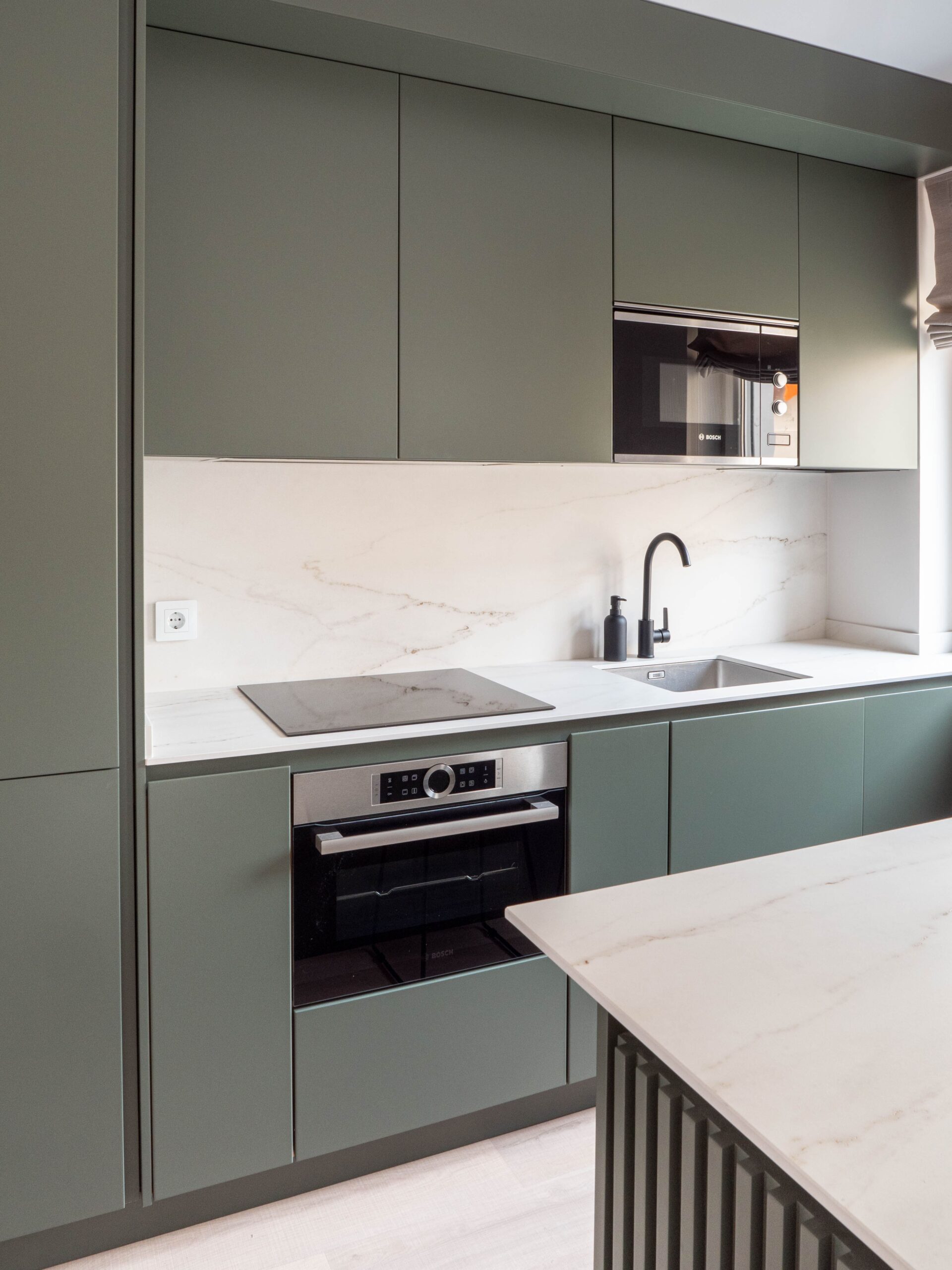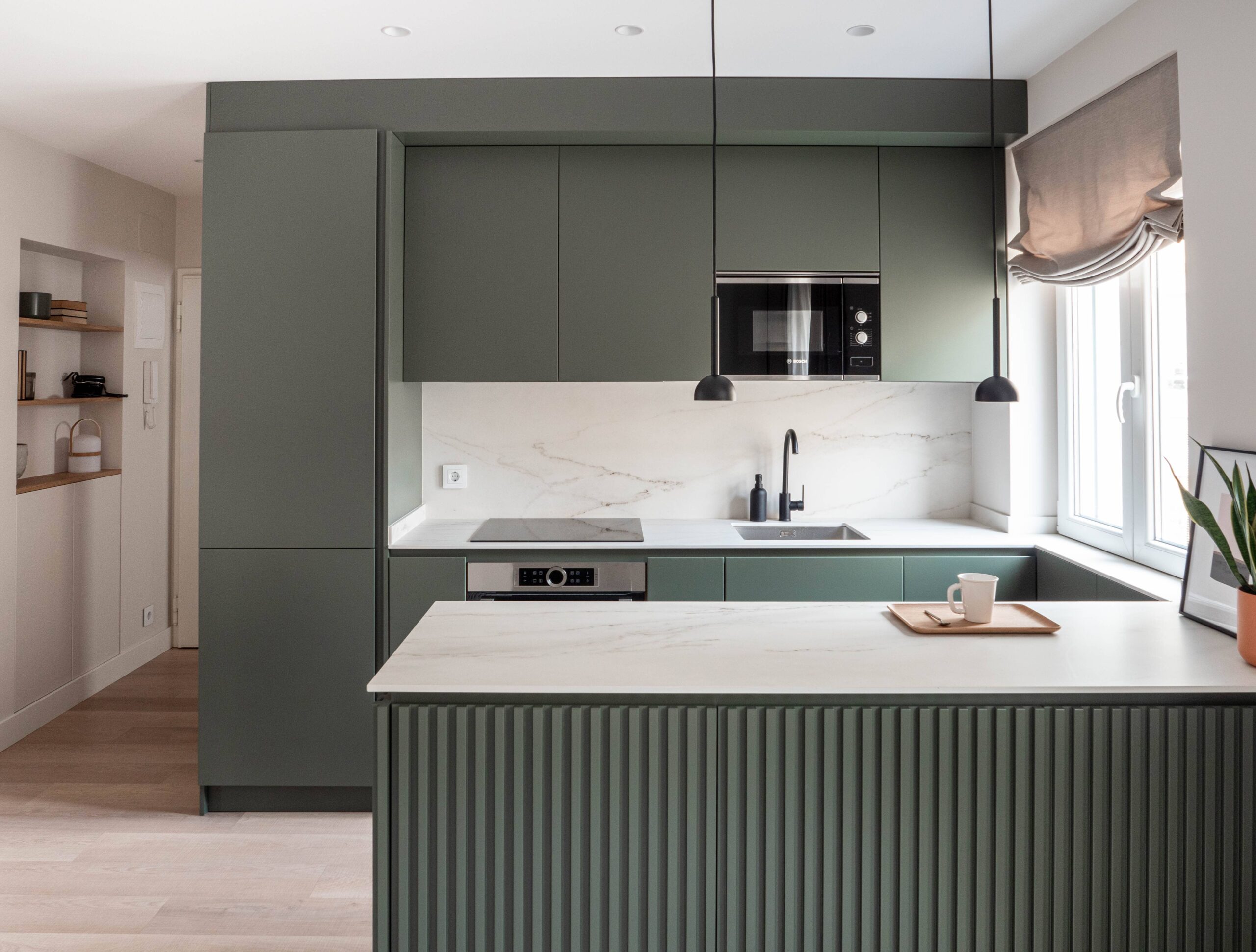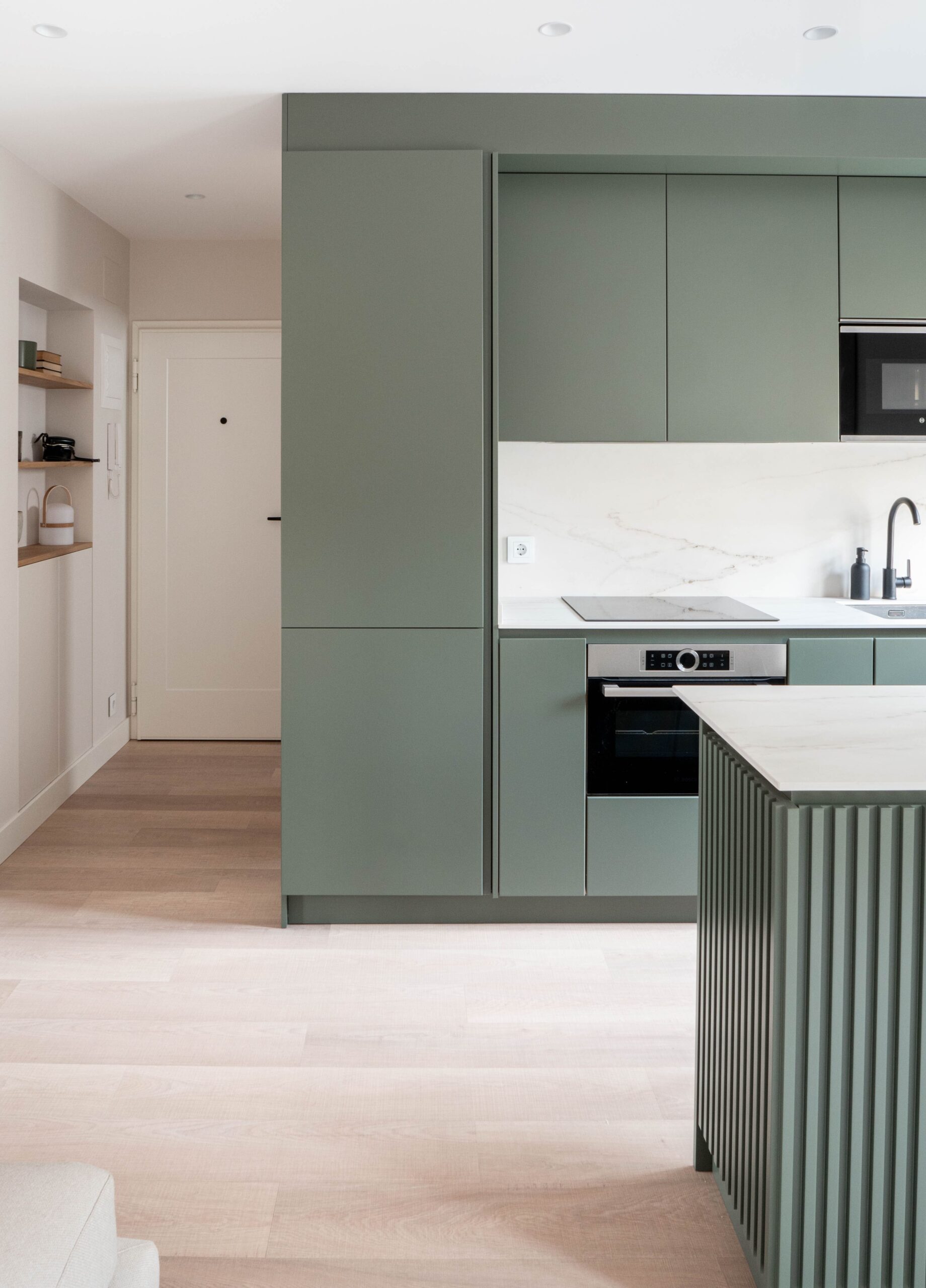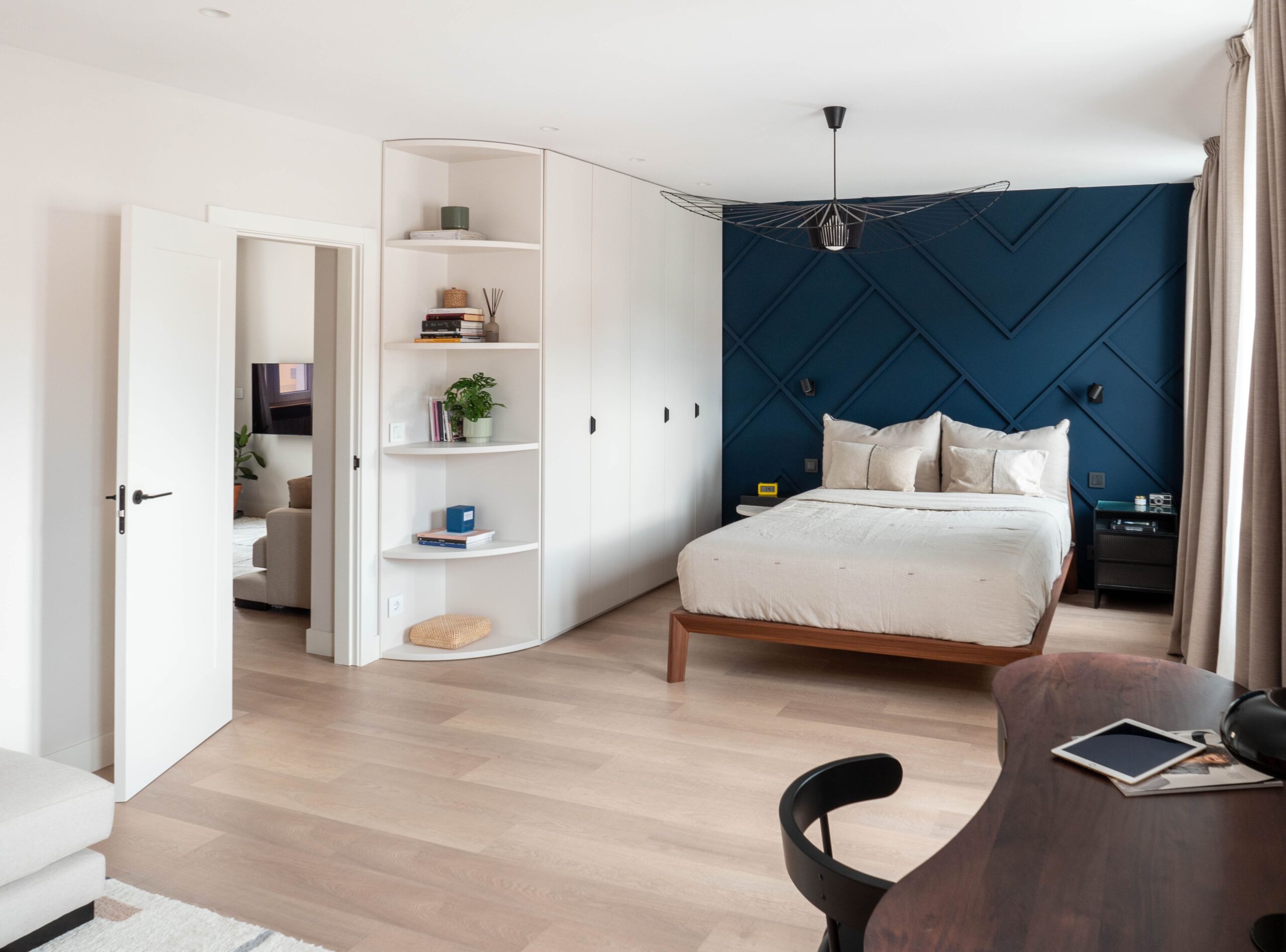 Selección de revestimientos y acabados para la reforma de la vivienda, con diseño de cocina y cabecero a medida por Lasal Estudio, selección de mobiliario, iluminación, textil y decoración.