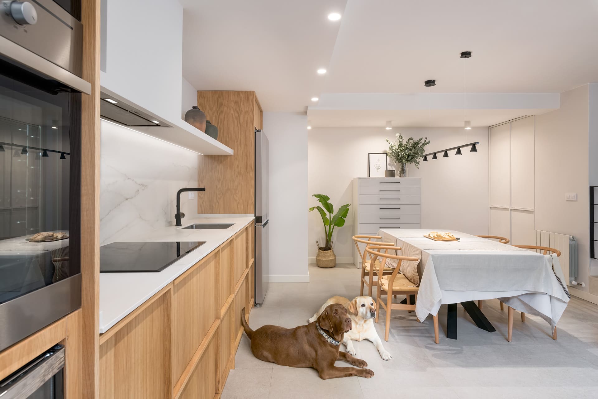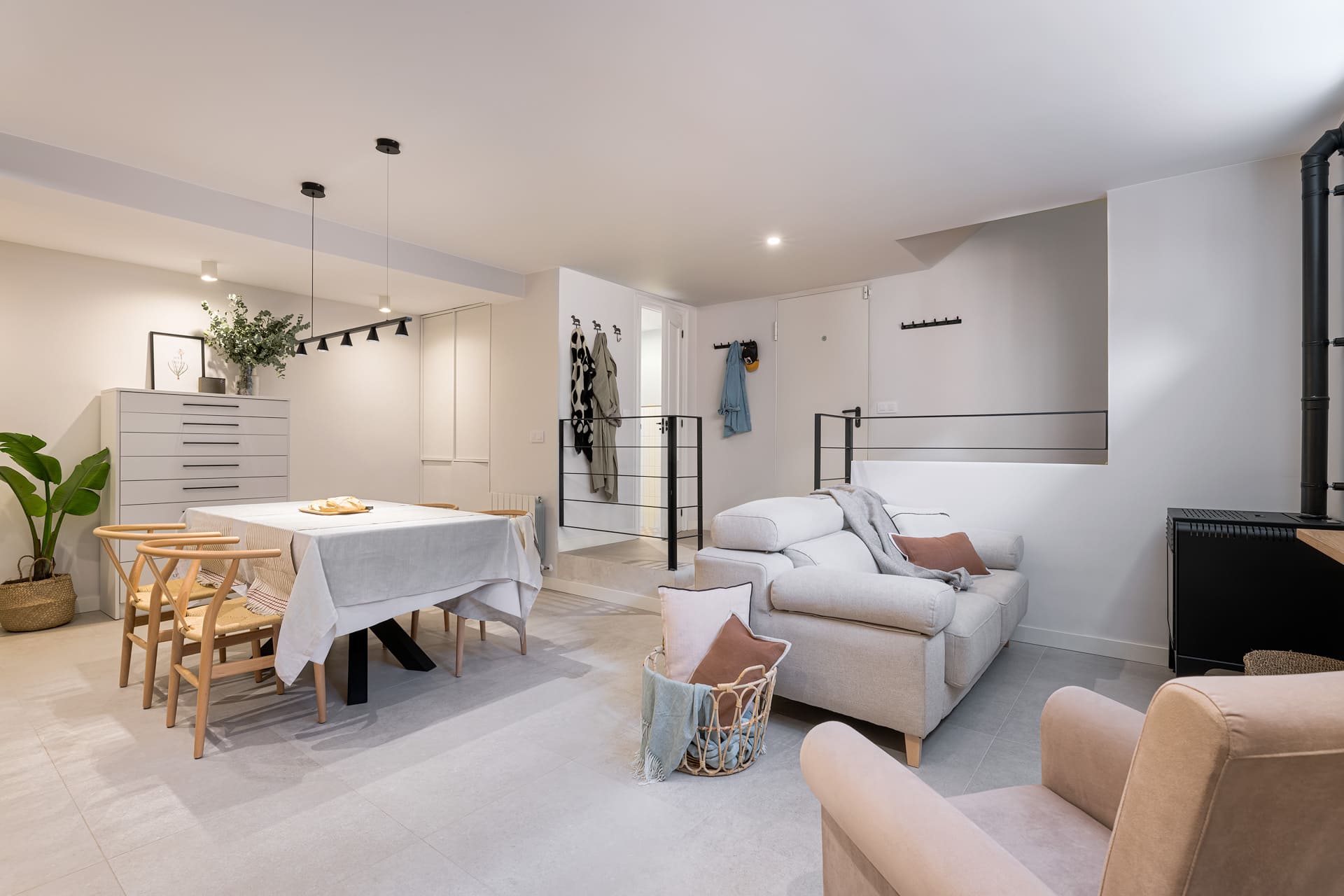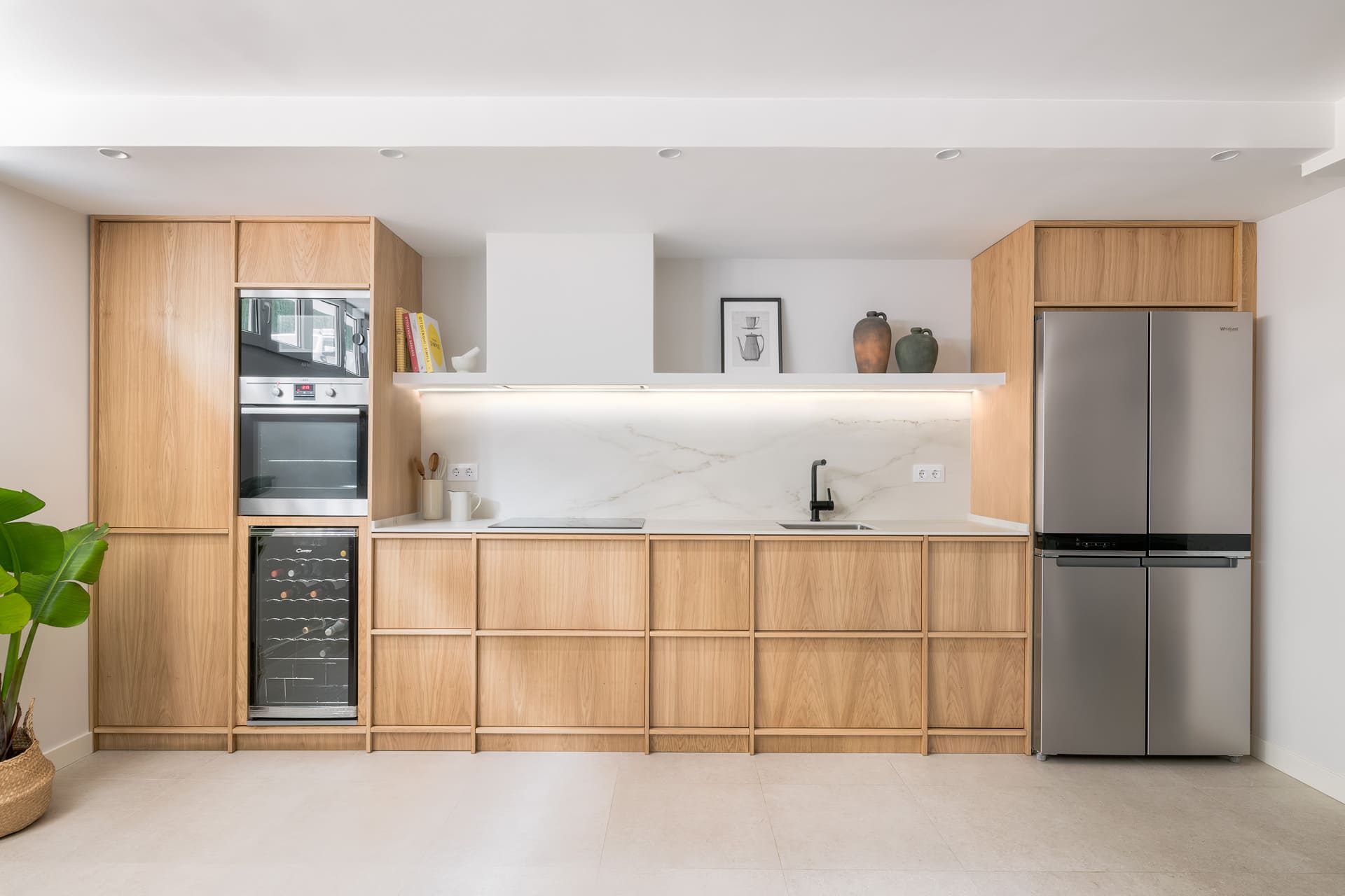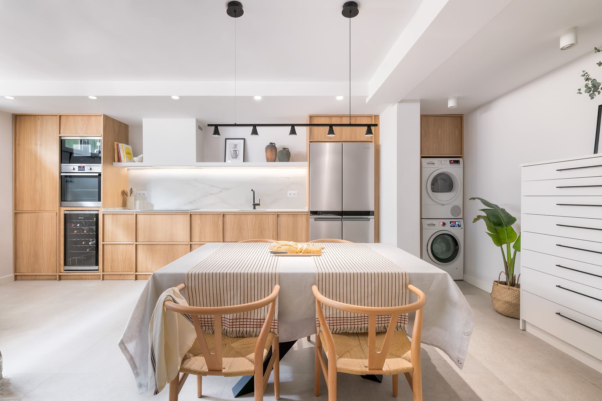 Reforma de txoko y baño con diseño de cocina a medida por Lasal Estudio, selección de mobiliario, iluminación y decoración.
